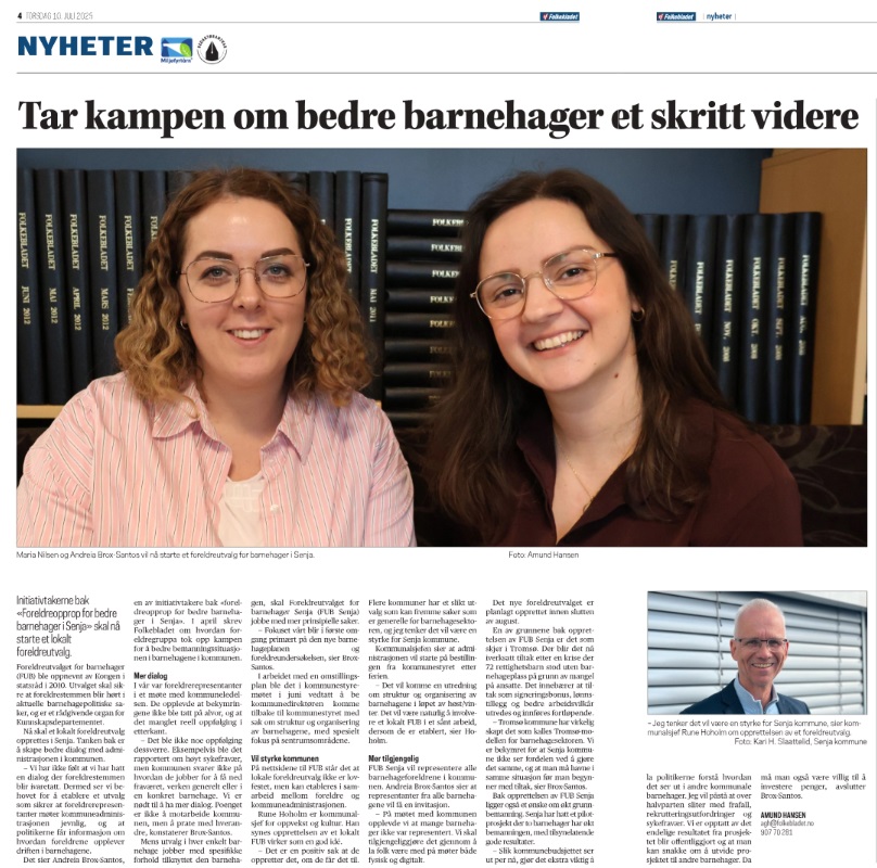 FUB Senja samler foreldre fra hele kommunen og løfter saker som angår alle barnehagene, for eksempel bemanning og rekruttering.